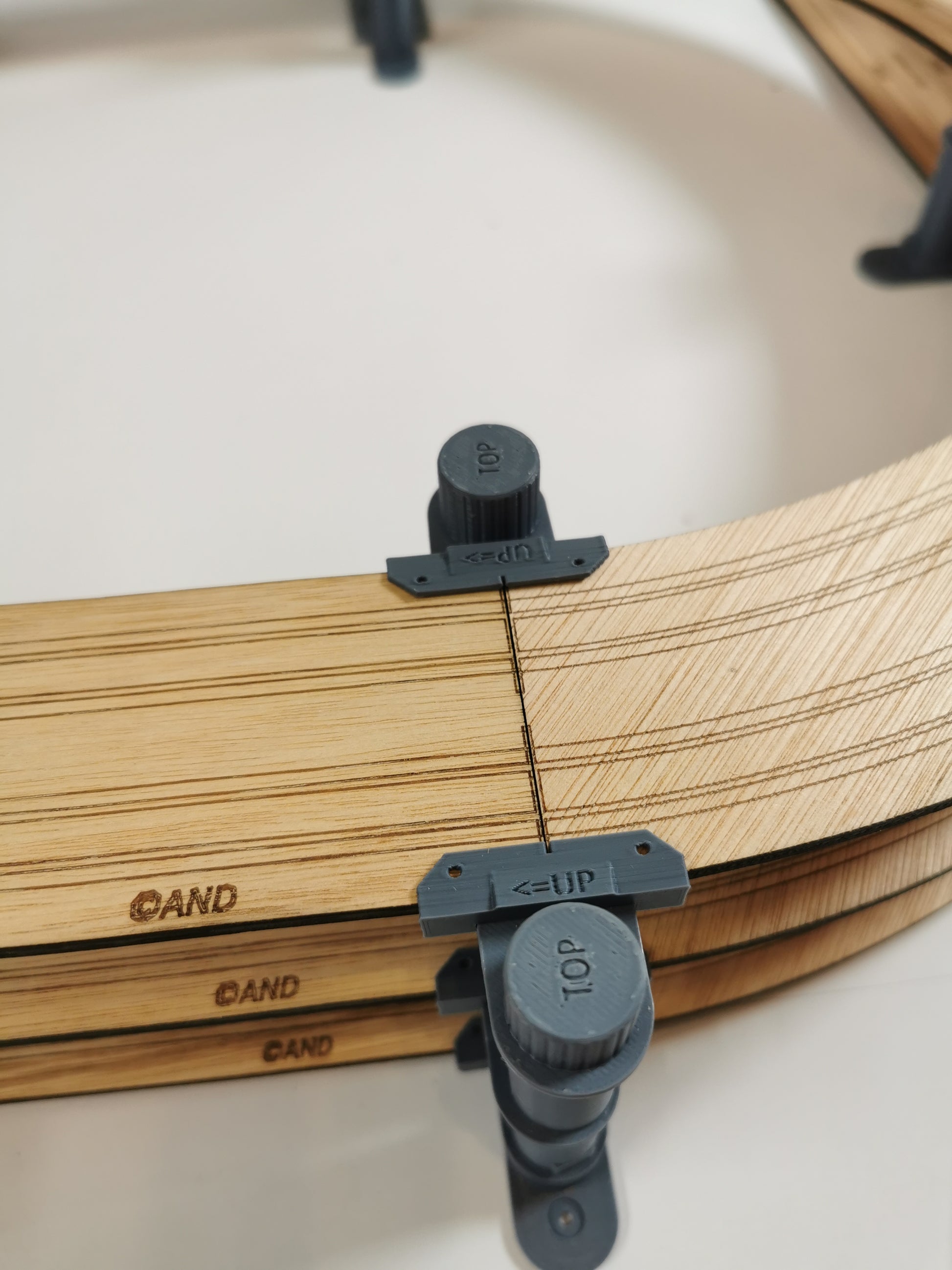 - Matériaux : Multiplex découpé au laser + éléments 3D imprimés en PLA ST